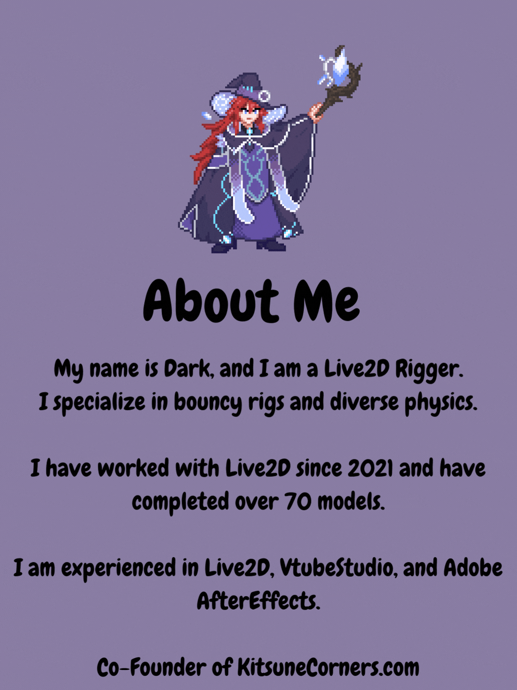 Payment will be via a business PayPal Invoice, payment must be made in full before files will be delivered to you. If you need a payment plan please ask me. Payment is typically 50% prior to start and 50% prior to finishing your model.All pricing is subject to change based on the complexity of the project and if you choose to add any additional requests during the rigging process. You will be notified if anything would require an additional charge.FAQ1. How do I get a model made? Where do I start?You’ll need to find yourself a Live2D Artist, typically you will purchase a character design from them to help design your model, and then purchase their services to actually get a PSD file of your model. One of the best places to look for artists is the Live2D Community Discord or the Vgen website.2. How can I reach you?You can contact me by email at [email protected], my twitter at @Darkearth10, or my discord #Darkearth.3. What do I need before my model or art can be rigged?You will need a psd of your model/art and it must be fully cut for animation. I may offer to cut projects for an additional fee.4. I’m a pretty good artist and want to draw my own model. Can I do that?Absolutely. However please look up a few guides before attempting. The .psd needs to be setup in a specific way in order to work for Live2D. Here’s a video I would recommend: https://www.youtube.com/watch?v=yiIRGzTthII.5. What software do I need to make my character move?There’s a number of different programs out there, I would recommend only the following:VTube Studio: Probably the best tracking solution out there most notably because it has the best facial tracking software. I highly recommend using something like an iphone for improved tracking quality.6. My model is breaking or having a defect, what do I do?Please just message me regarding the issue and I'm happy to help you fix it!7. Will I get the source file once you are done rigging my model?To prevent copyright issues I do not give out the source files of my work. You as my client will receive everything you need for your model to work, as well as lifetime support with any issues that may come with my rigging. You may purchase the source file (cmo3) for 3x your project cost if you really wish to have it.8. It’s been XXXX time and I want to add something to my model, how much will it cost?If you need anything extra done for your model after your initial commission, please feel free to reach out to me and I can provide you a quote.9. Are there any upfront fees?Once we have agreed upon a project I charge 50% up front to begin work and 50% after the work is complete. If you want to add anything extra while I’m working on the project we can just tack that cost at the end.10. Waitlist PolicyAt this time I am currently booking 2 Rigging Commissions per month. It is a $50 nonrefundable fee to reserve a date on my waitlist. The $50 will be credited towards the cost of your down payment.11. Will you support your work after it is complete?I support all my clients for lifetime after hiring me. If you ever have any issues with your model or ever need additional work done you can always get in touch with me and I will help you out.12. Does the purchase come with commercial rights?Yes you are free to use your model on any platform for profit. However you MUST credit me in your videos/streams description as your model rigger. Please link to my twitter or website.